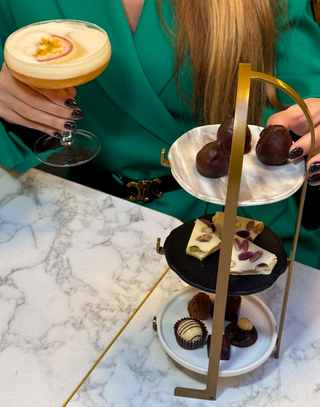 Deléitese con nuestra exclusiva selección de chocolates artesanales, elaborados a la perfección, junto con café o té de primera calidad.